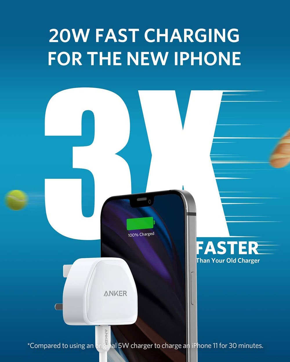 - Fast Charging: Charge iPhone 11 to 53% in just 30 minutes—that’s up to 3× faster than with an original 5W charger.