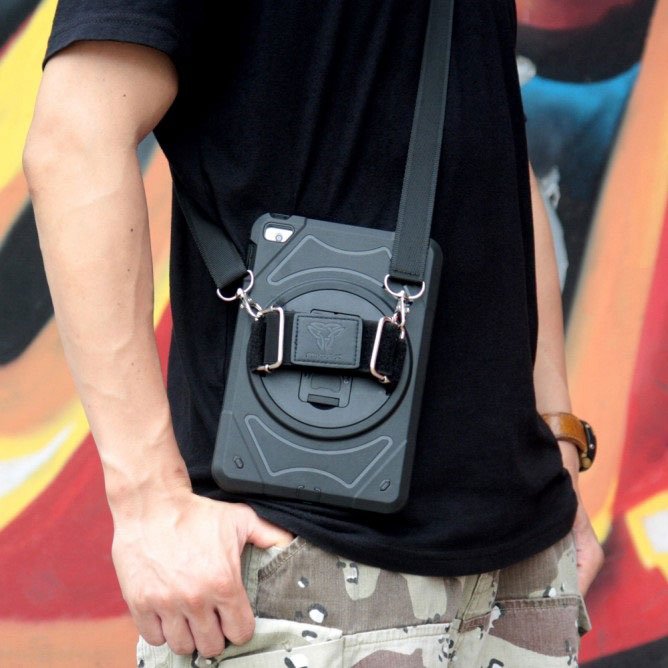 Armor-X ENX Shockproof Rugged Case for iPad Mini 5 7.9-Inches with Hand Strip, Kick Stand & Pen Holder, Black
