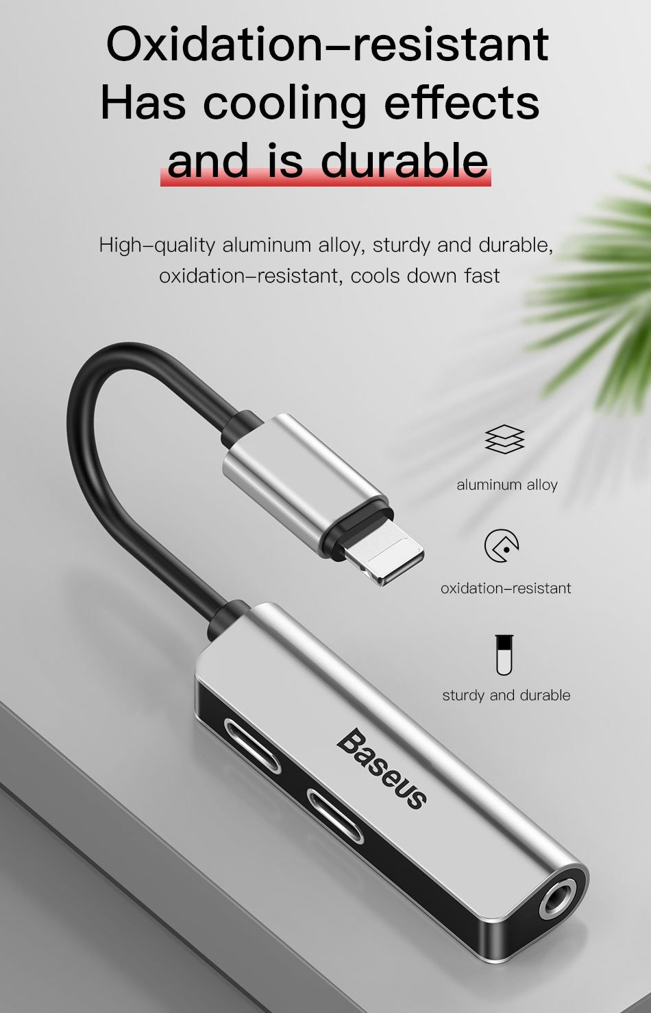 Baseus 3-in-1 iP Male to Dual iP & 3.5mm Female Adapter CALL52-S1 – Silver