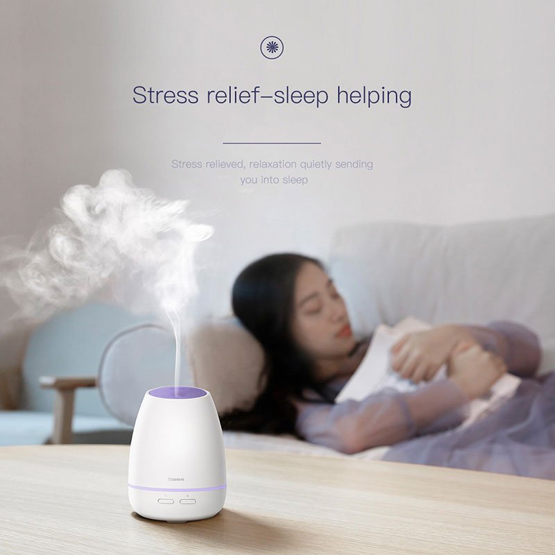 - In addition aroma diffusers can be used to help reduce stress and promote healthy sleep. All you need to do is add a few drops of Baseus essential oil to the diffuser to add a touch of blissful relaxing fragrance to the air (essential oil sold separately).