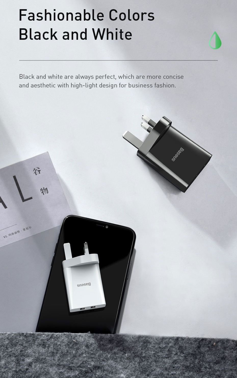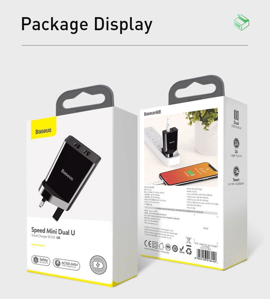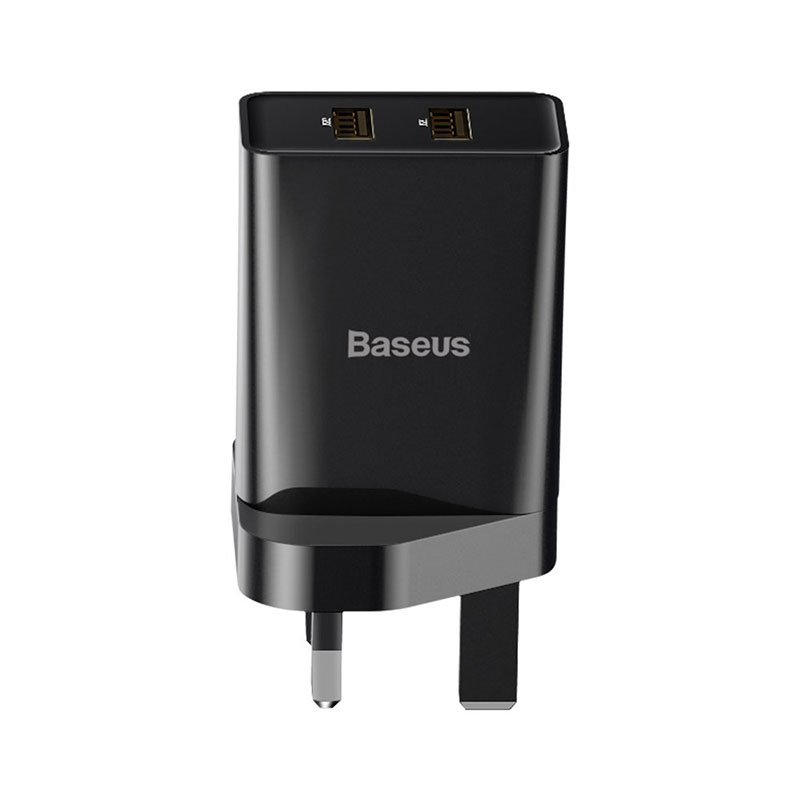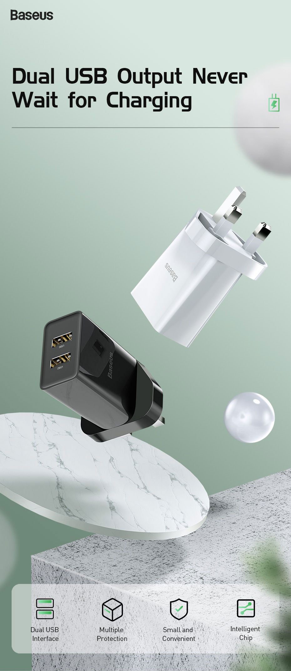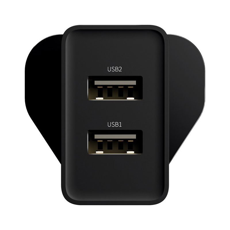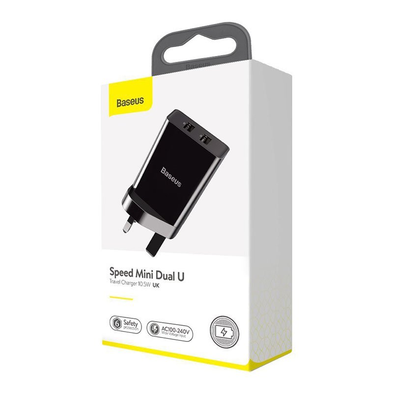 Baseus Speed Mini Dual USB Travel Charger 10.5W UK Wall Plug CCFS-S01, Wall Charger UK adapter 2x USB 2.1A 10.5W, 10.5W Fast Charger UK Plug Travel USB Wall Charger Adapter with 2 USB Outputs – Black