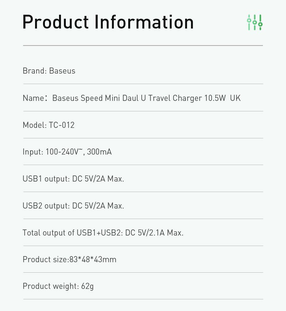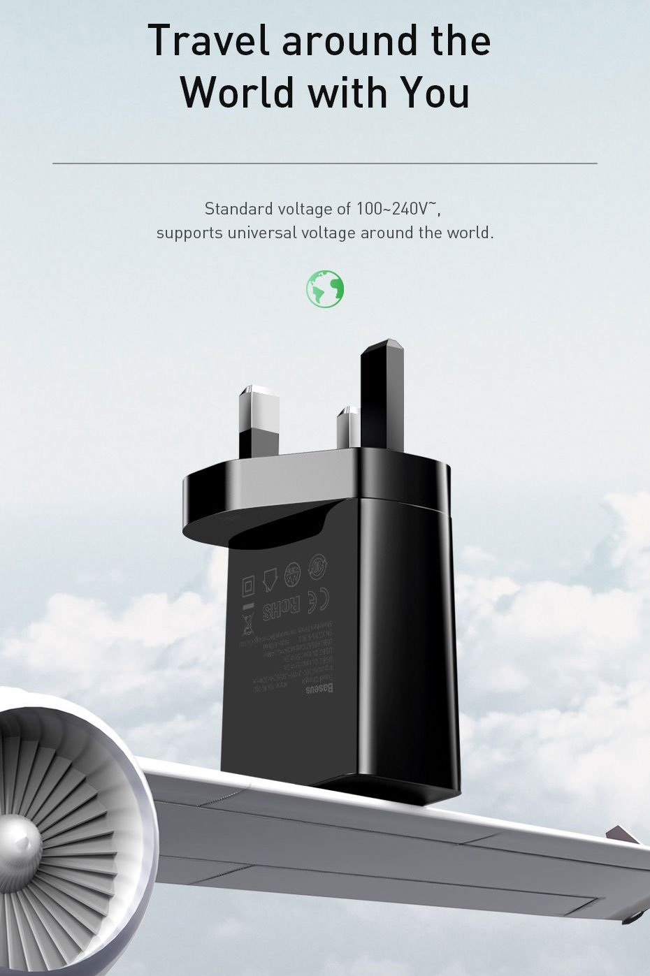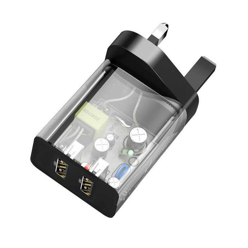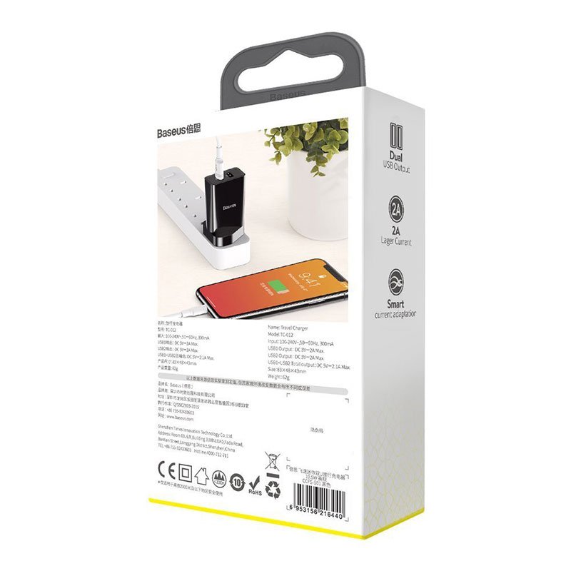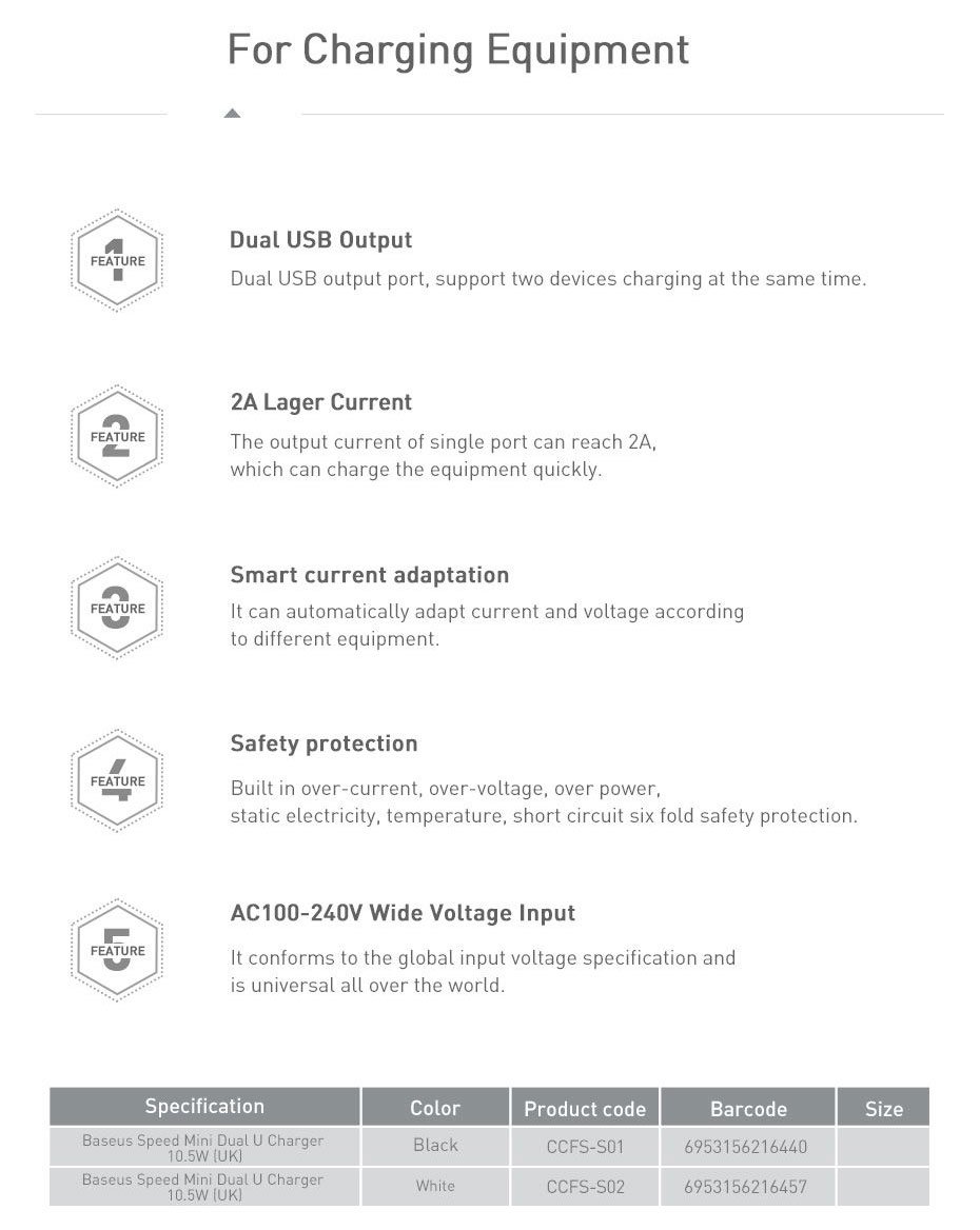 Baseus Speed Mini Dual USB Travel Charger 10.5W UK Wall Plug CCFS-S01, Wall Charger UK adapter 2x USB 2.1A 10.5W, 10.5W Fast Charger UK Plug Travel USB Wall Charger Adapter with 2 USB Outputs – Black