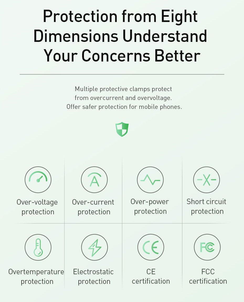 - Over-current, short-circuit and over-temperature protection for your device safety, offering you devices safety charging experience
