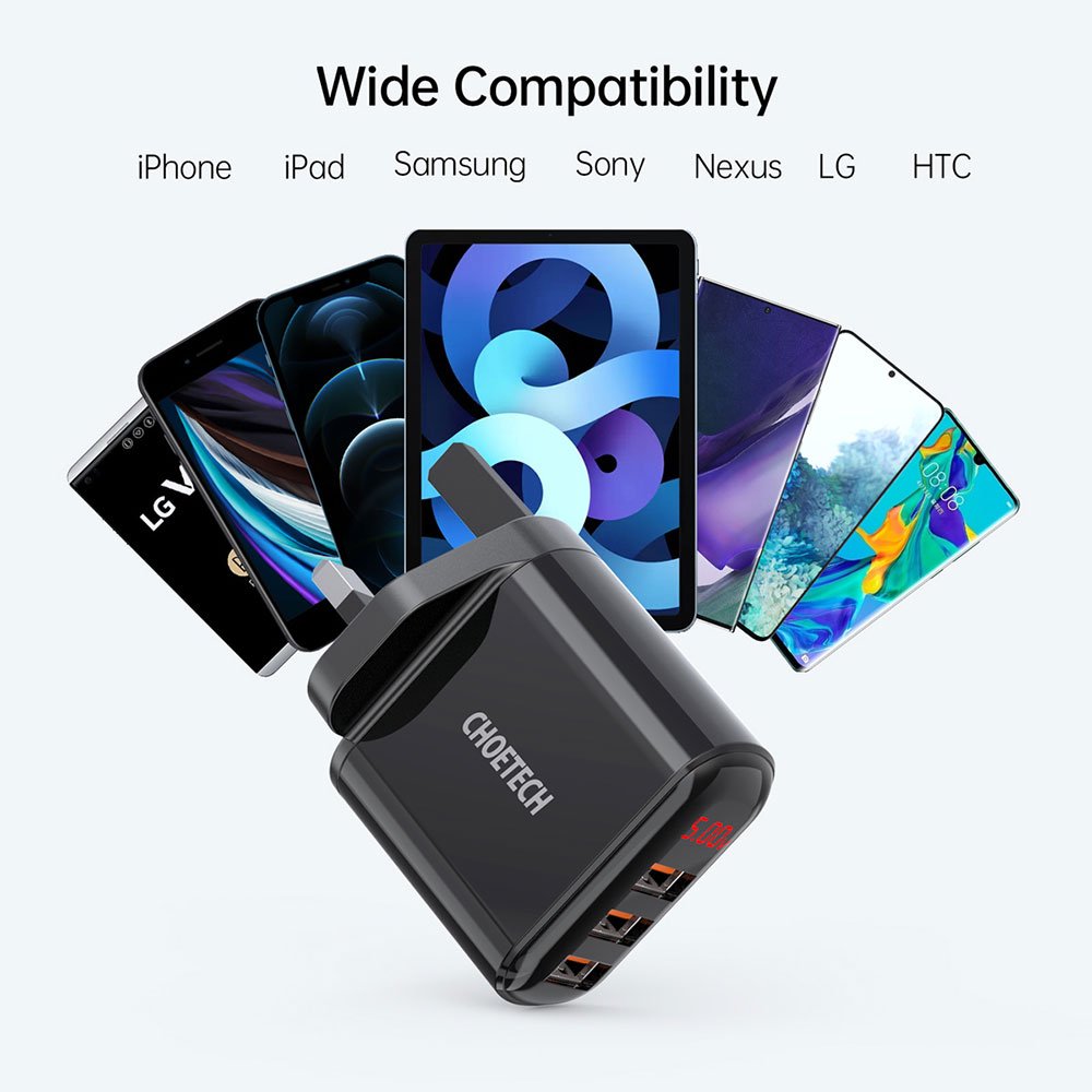 CHOETECH 3-Port USB Wall Charger with Digital Display Q5009 – Black