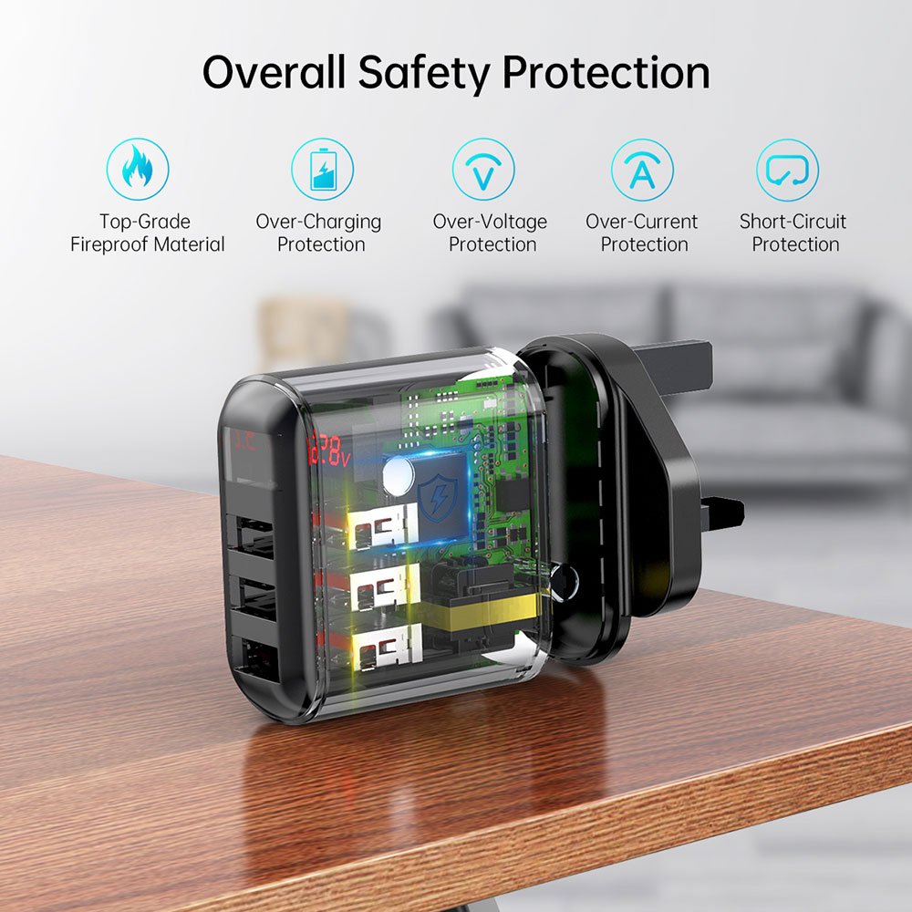 CHOETECH 3-Port USB Wall Charger with Digital Display Q5009 – Black