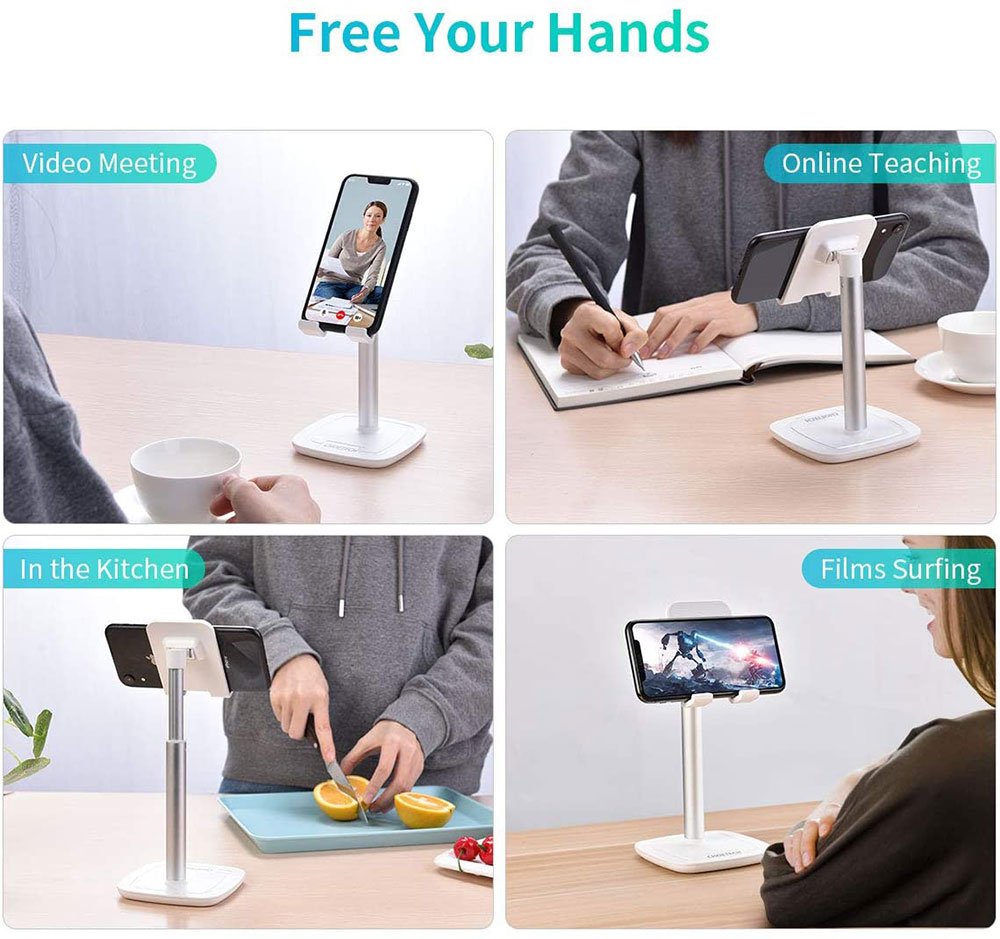 CHOETECH Adjustable Desktop Phone Holder/Stand, Phone Stand, Angle Height Adjustable Tablet Stand on Desk, Aluminum Metal Phone Holder for iPhone 12 Pro Max 11 11Pro Max, iPad Pro, Samsung Tablet, Samsung Galaxy S20 S10, Nintendo Switch, White