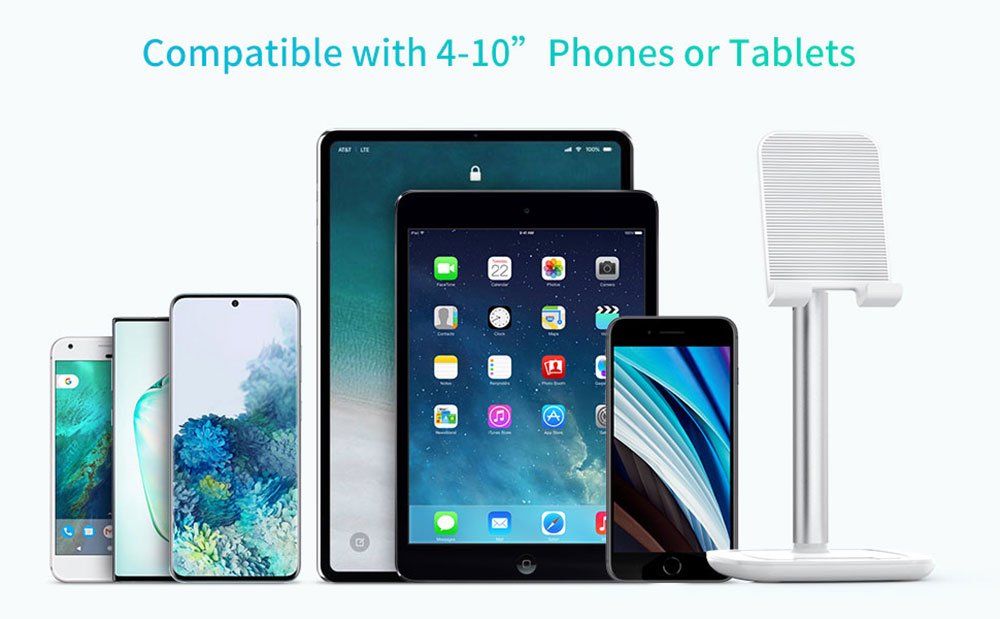 - Excellent Compatibility: The iPad stand Compatible with 4~10 inches phones and tablets (even with case on it), for example iPhone 12 mini/12/12 Pro/12 Pro Max 11/11 Pro/XS/XS MAX/XR/8/8P, iPad Pro 2020, Galaxy Samsung S20/S10+/S10e/S10/S9+/S9/S8+/S8/S7,Note 10/9/8, Kindle, Nintendo Switch, Sony, LG, Google Pixel, Nexus etc. Tips: For tablets over 10-inch, the iPad stand can support the device, but it cannot be stretched