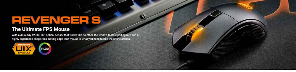 REVENGER S The Ultimate FPS Mouse With a 4K-ready 12.000 DPI optical sensor that tracks like no other, the world’s fastest polling rate and a highly ergonomic shape, this cutting-edge tech mouse is what you need to rule the online arenas.
