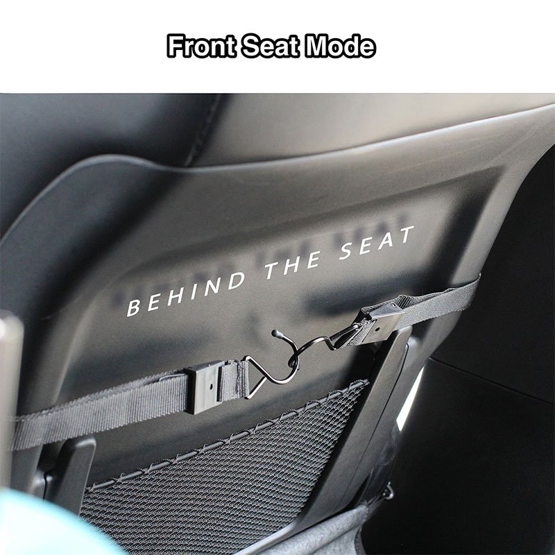 - BONUS: Optional strap tie downs hook into your trunk like a cargo net, around your seat backs, or onto your backseat child safety seat anchors so that your belongings stay securely in place
