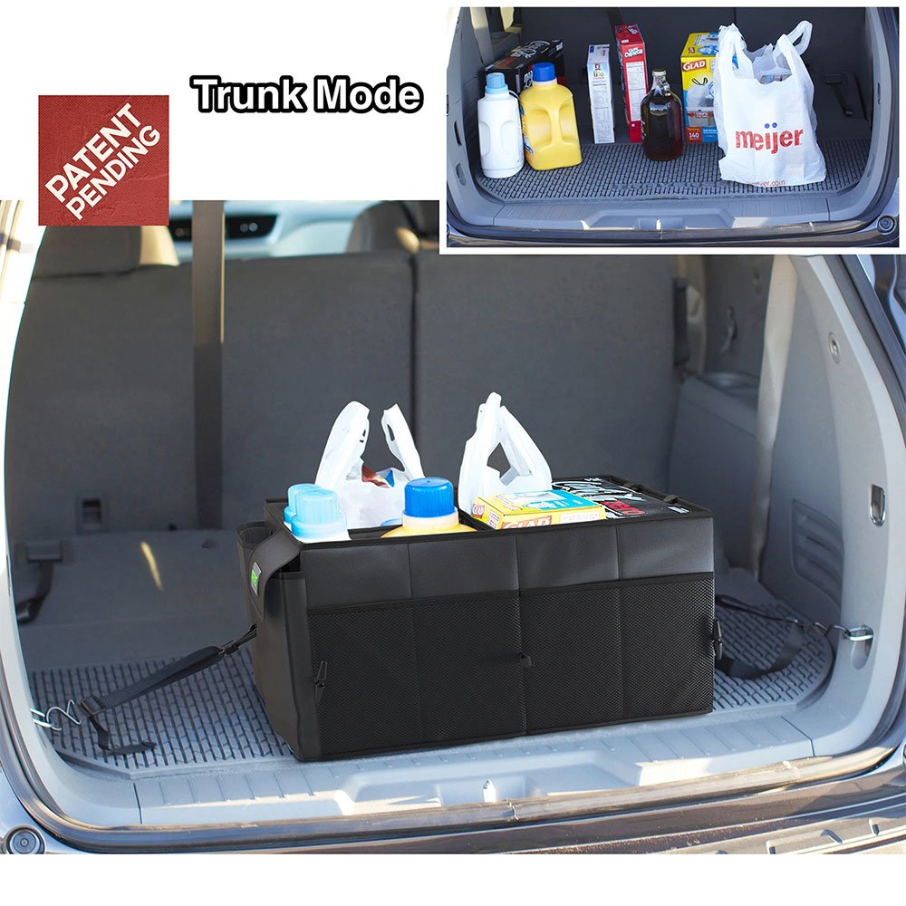 DRIVE™ Car Trunk Organizer – Best Storage for Auto Front & Back Seat, Collapsible – Straps Hold Vehicle Cargo Secure and Prevent Sliding – Toy, Grocery, or Office Automotive Carrier Tote – Black
