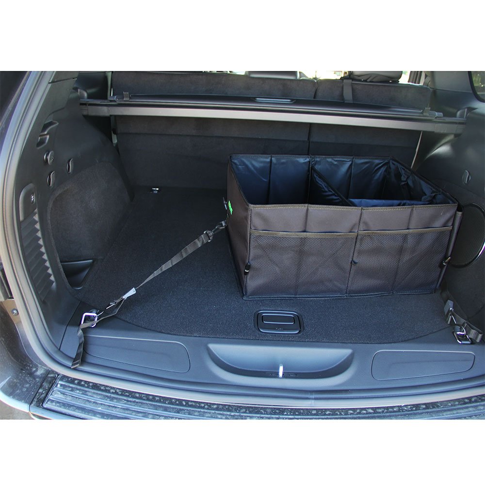 A unique and practical rendition that features an adjustable strap and lock down kit. Instead of your cargo organizer sliding around your trunk at every turn & stop, tipping over, or sliding off your seat you can now secure your belongings by clipping the optional straps to anchors points located through your vehicle.