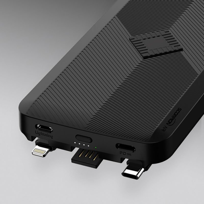 The iWalk Scorpion Air Wireless Power Bank is a 12000mAh with 18W PD USB-C + QC3.0 and Wireless Charging Function with Built-in Lightning ,Type-C, Micro USB and Self Charging cable