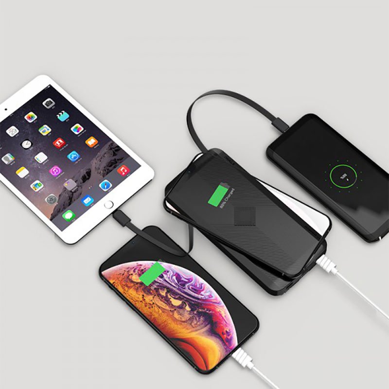 - Built-in USB-C, Lightning Charging and USB recharging cables
