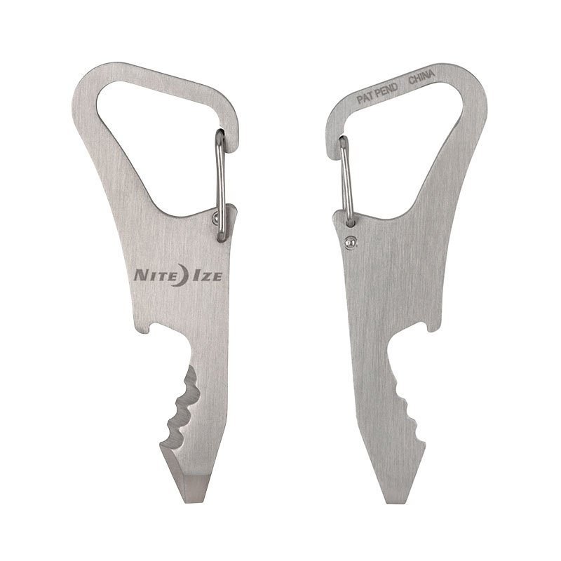 - 5-in-1 multi-tool includes: carabiner clip, bottle opener, serrated edge, scoring point, slotted or #2 Phillips screwdriver