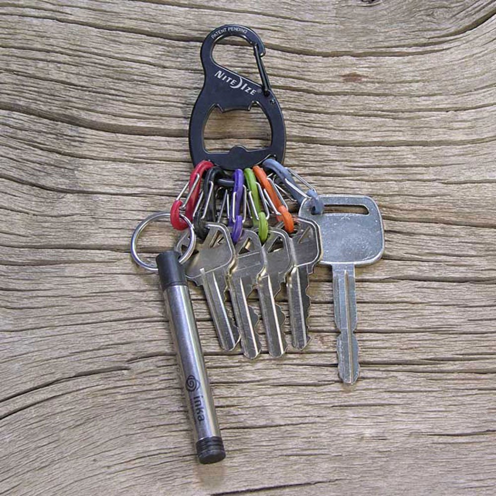 - A BETTER WAY TO HOLD YOUR KEYS + POP A TOP – This key chain has a stainless steel body with an integrated carabiner clip AND bottle opener, plus it features six colorful plastic S-Biners to securely hold, attach, remove, and identify keys