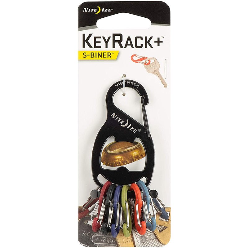 NiteIze KeyRack+ S-Biner KRB-03-01, Stainless Steel Carabiner Key Chain with Bottle Opener + 6 Colorful Plastic S-Biners To Hold + Identify Keys, Black