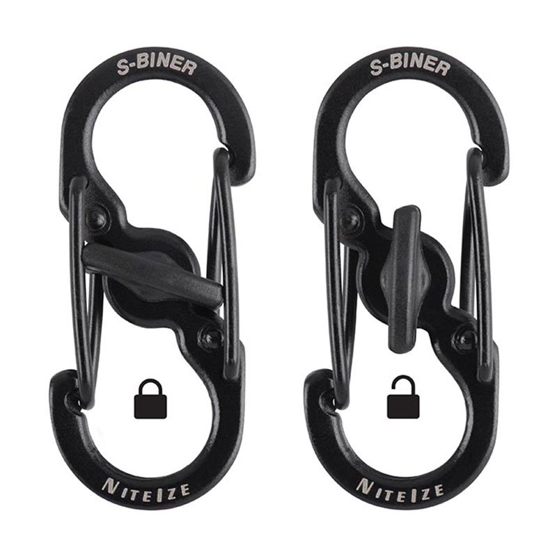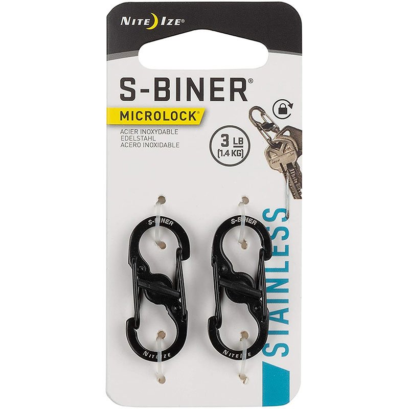 NiteIze S-Biner MicroLock Stainless Steel 2 Pack LSBM-01-2R3, Locking Key Holder, Stainless-Steel, Black