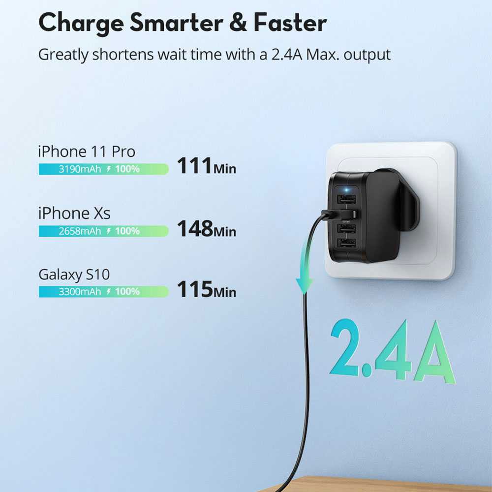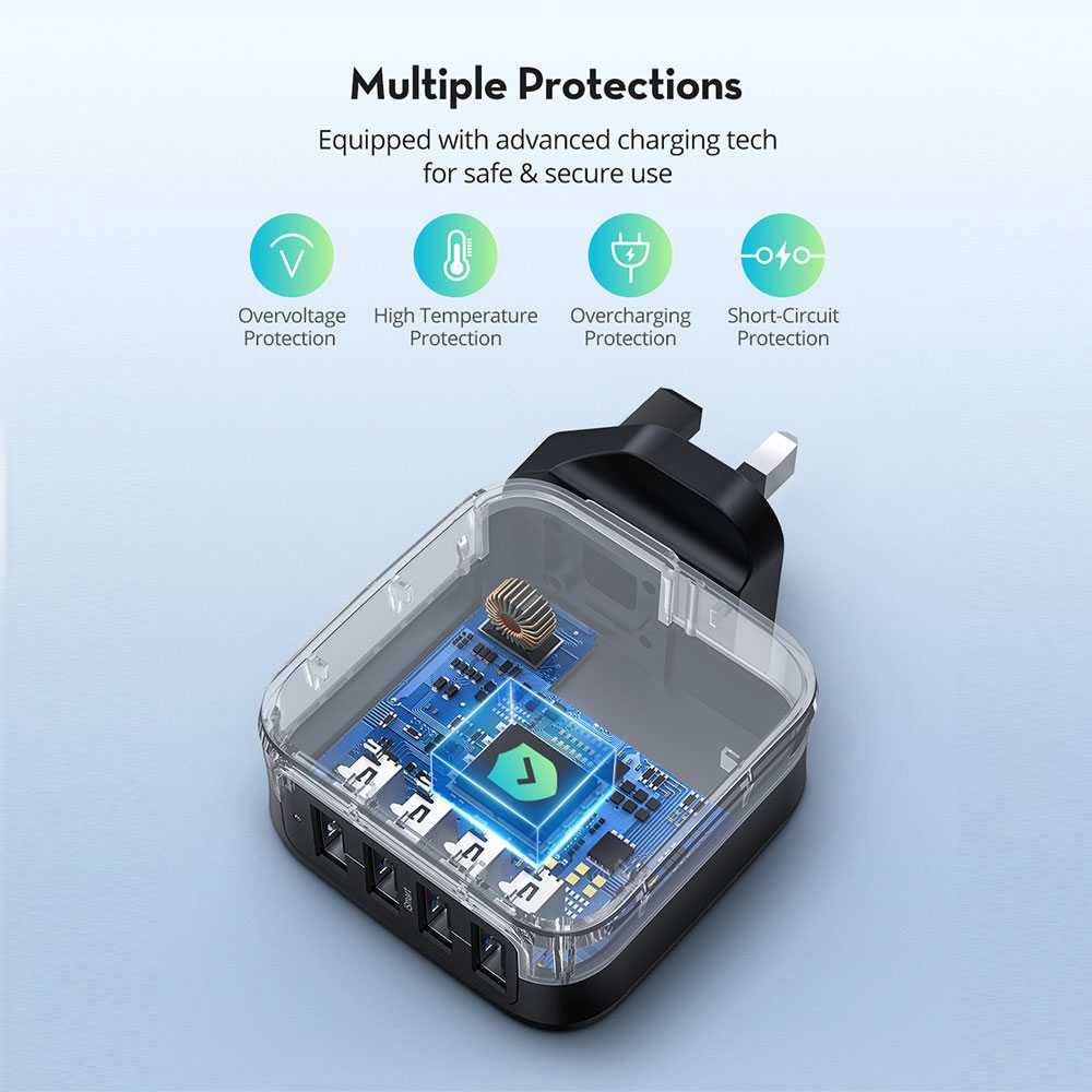 - Exclusive iSmart Technology: All 4 USB ports are equipped with iSmart technology, which automatically detects and delivers the optimal charging current for connected devices.