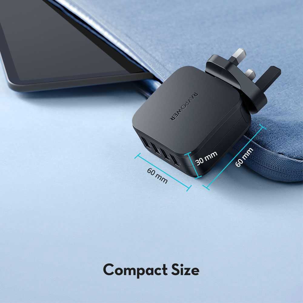 RAVPower Prime 40W 4-Port USB Wall Charger (UK) RP-PC101BLK – Black