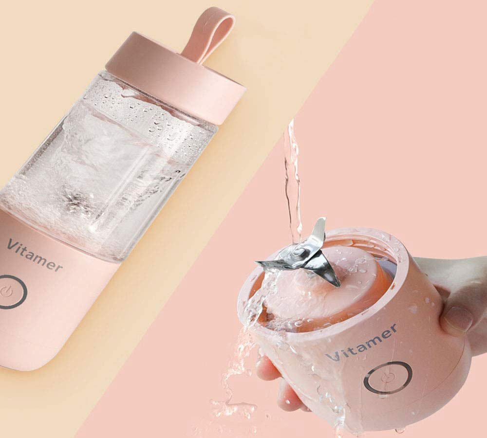 Vitamer Mini Portable Fruit Juicer 350ml, Personal Blender Juice Cup, Portable Electric Fruit Juicer USB Rechargeable Smoothie Maker Blender Machine Sports Bottle Juicing Cup, Pink