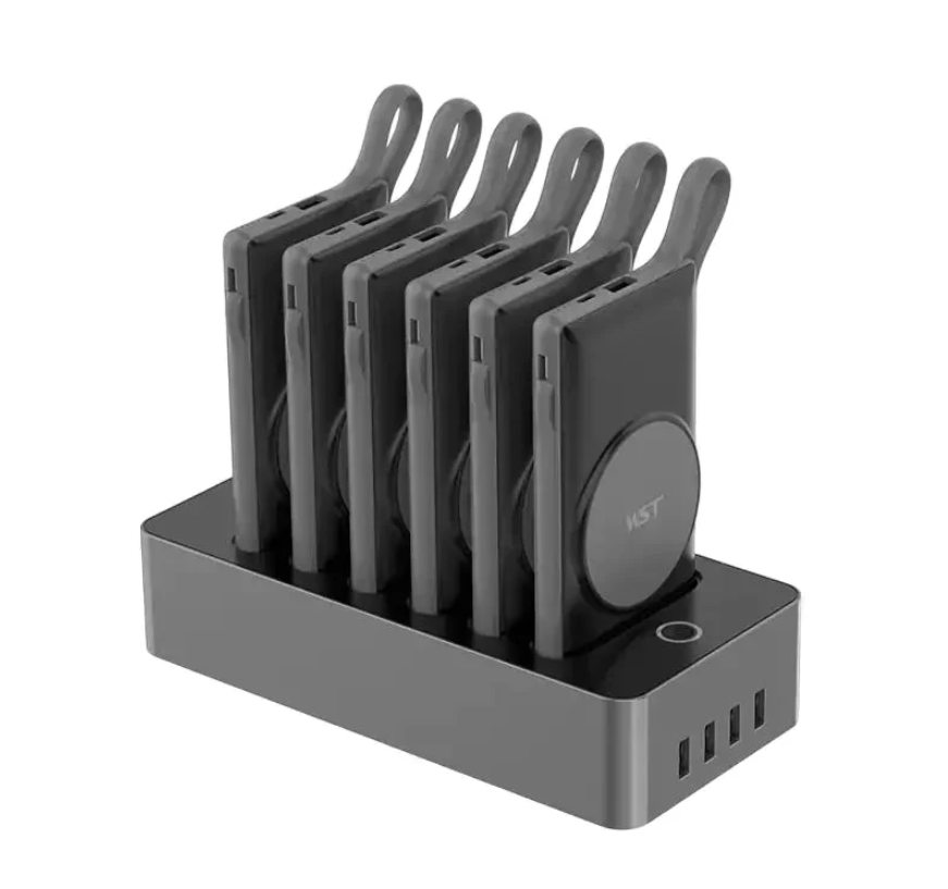 WST Shared Powar Bank Battery Wireless Magnetic Phone 10000mah Charging Base Power Banks Portable Dock Station Built in Cable