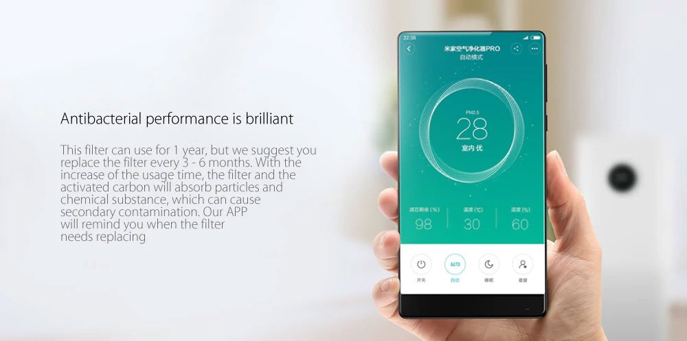 How well a filter performs depends on its purification ability and aerodynamic design. Our brand new Xiaomi purifier filter ( antibacterial version ) can effectively absorb PM2.5 particles, dust mites. Coated with the special antibacterial layer, it can kill the bacteria. The activated carbon can eliminate the pollutants in the air. Our APP will remind you when the filter needs replacing.