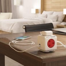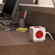 Allocacoc PowerCube Extended USB 4 Power Outlets and 2 USB Ports with 1.5m Cable UK – Red